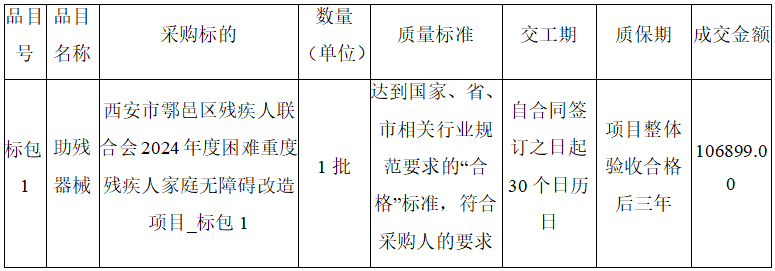 標(biāo)包1(西安市鄠邑區(qū)殘疾人聯(lián)合會(huì)2024年度困難重度殘疾人家庭無障礙改造項(xiàng)目_標(biāo)包1):